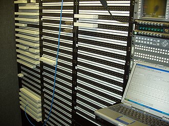 A patch panel, also known as a patch bay, patch field, jack panel, or jack field, is a versatile device used in various settings such as computer networking, recording studios, and radio and television. Its primary function is to connect and route circuits for monitoring, interconnecting, and testing in a flexible and convenient manner. In the context of recording studios, concert sound reinforcement systems, and broadcast studios, patch panels play a crucial role in facilitating the connection of different devices, making it easier to connect various equipment in different orders for different projects. They are also utilized in home cinema and structured wiring installations. The normalization of patch bays involves wiring the top row of jacks to outputs and the bottom row to inputs. While dedicated switching equipment can be an alternative to patch bays, it is often more expensive and may not fully replicate the capabilities of a patch panel. Overall, patch panels are fundamental components in managing and facilitating connections in various technical environments.