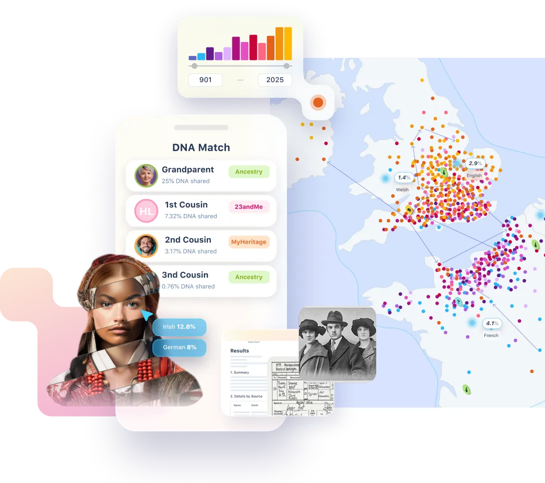 Upload your data to unlock more DNA matches across Ancestry, 23andMe, and MyHeritage — totally FREE.